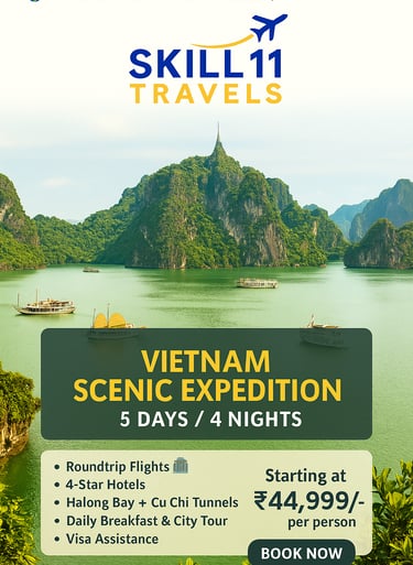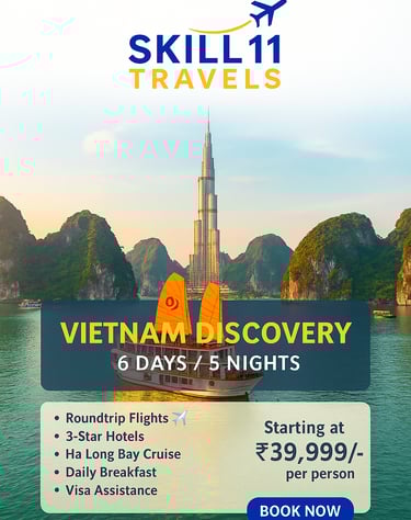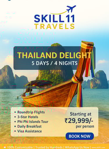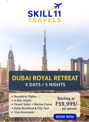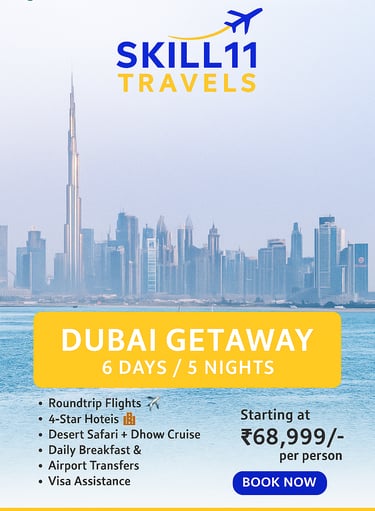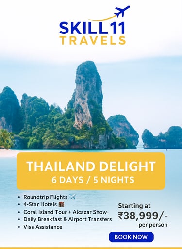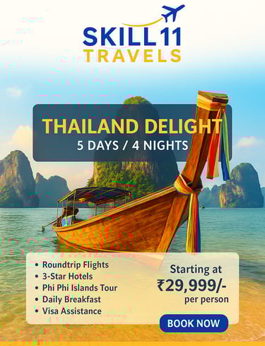 Skill11 Travels is a trusted tour and travel service provider based in India, specializing in visa solutions and customized holiday packages for both Indian citizens planning international travel and foreign tourists visiting India.